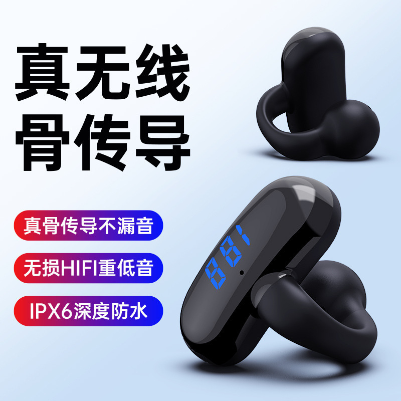 Headset Bluetooth 2024, konduksi tulang nirkabel non-in-ear kapasitas besar tampilan digital tanpa rasa sakit klip olahraga tipe telinga sangat tahan lama