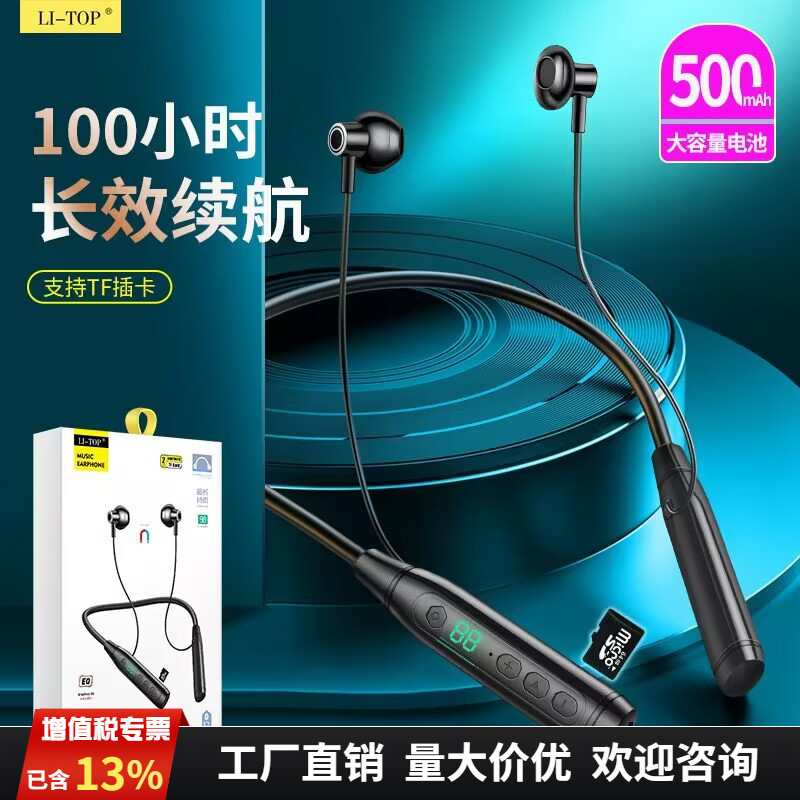 Headset Bluetooth nirkabel, dipasang di leher ultra-panjang siaga untuk Android Huawei vivo headset Bluetooth olahraga ponsel