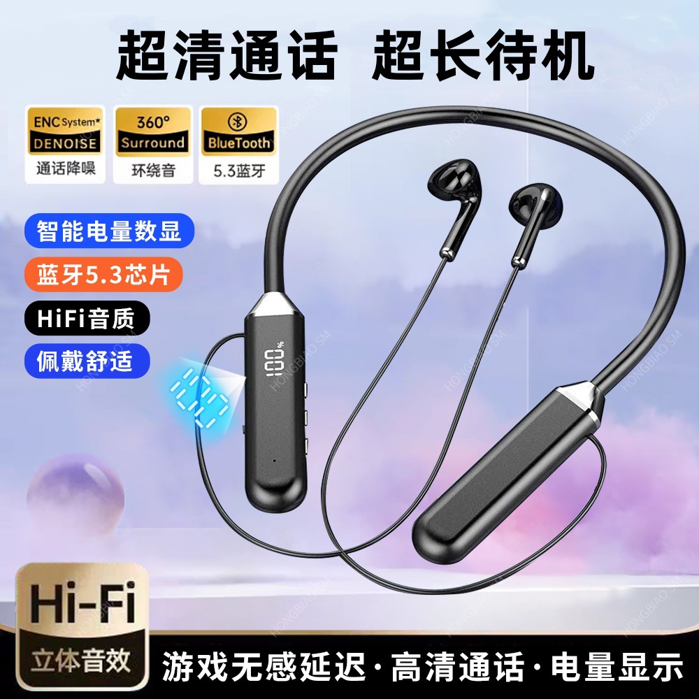 Headset Bluetooth untuk Apple Xiaomi Model Baru Olahraga Pengurangan Noise Model Pribadi Model Gantung Leher Super Panjang Headset Nirkabel Siaga