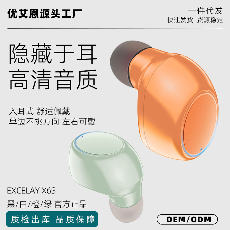 Earphone Bluetooth EXCELAY X6S in-ear mini tersembunyi, panggilan satu sisi nirkabel, earbud lintas batas, langsung dari pabrik.