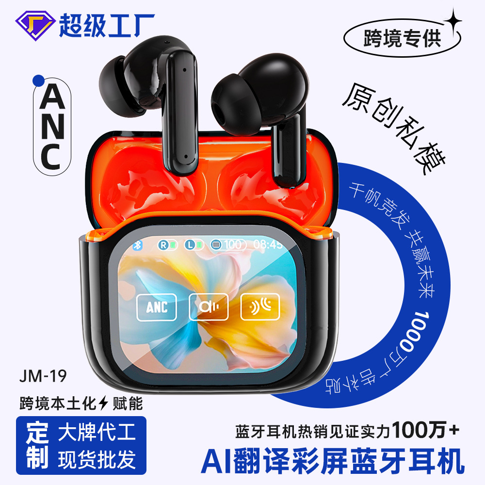 Huaqiang headset Bluetooth nirkabel, M6 layar besar sentuh aktif ANC pengurang kebisingan Bluetooth layar pintar permainan