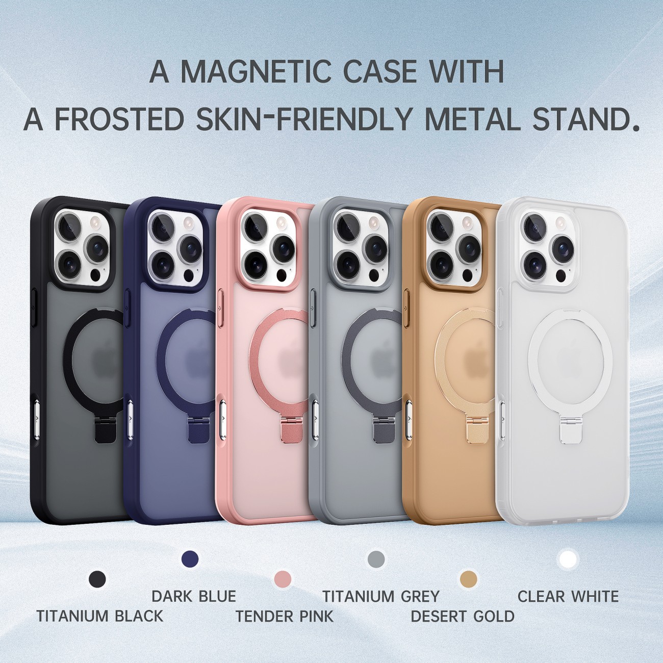 Cocok untuk iP16Promax Bracket Kulit Magnetik Casing Pelindung Ponsel Matte Casing Pelindung IP15pro Produk Trendi