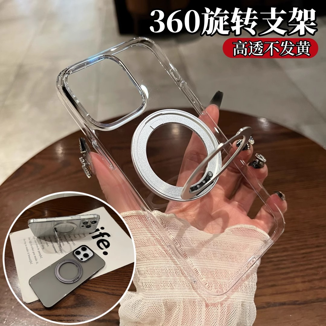 Penyangga Berputar 360 Cocok untuk Apple 16Pro Casing Ponsel Model Baru Transparan iPhone 15Promax Sarung Keras Transparan Tinggi