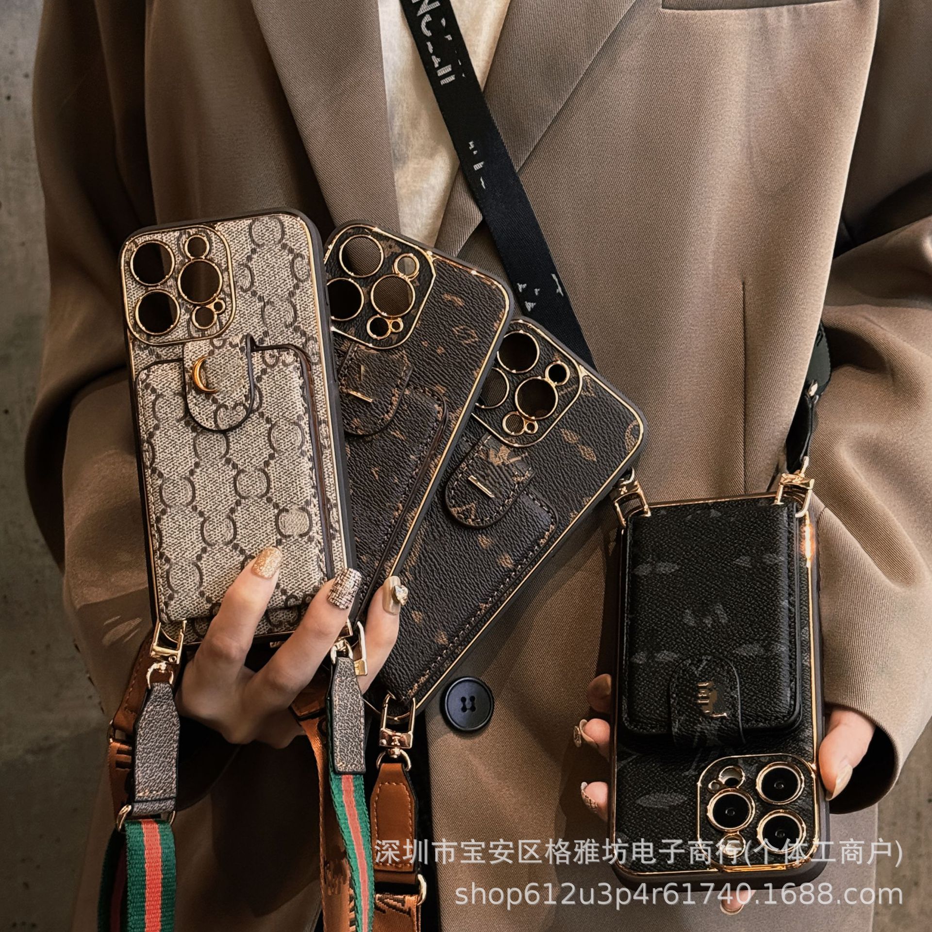 Casing Ponsel Apple 16Promax Cocok untuk Selempang Mewah Merek Trendi Kulit iPhone13 15Plus Mewah Ringan Premium