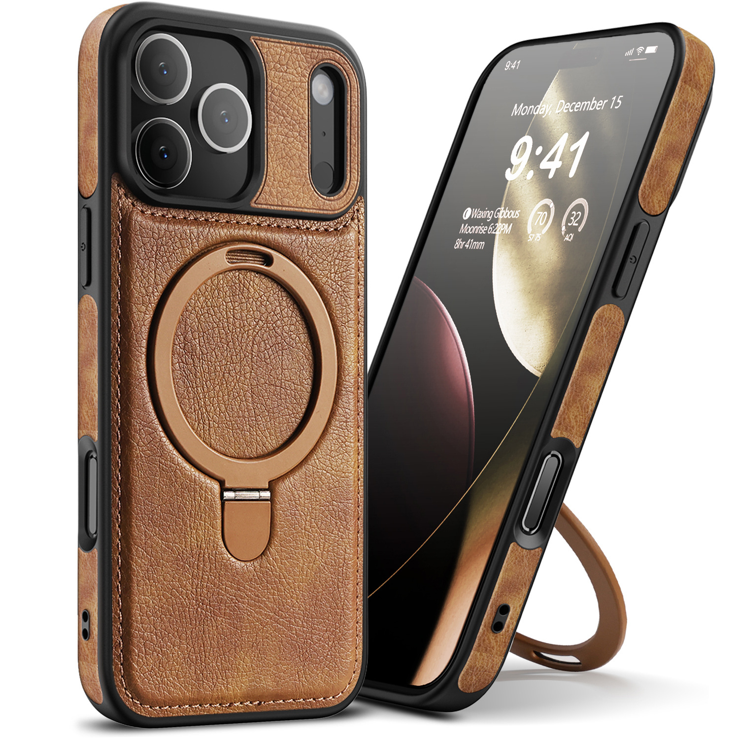 Cocok untuk casing ponsel kulit iPhone16 Pro Max dengan dudukan bawaan dan fungsi hisap magnetik, casing Apple 15