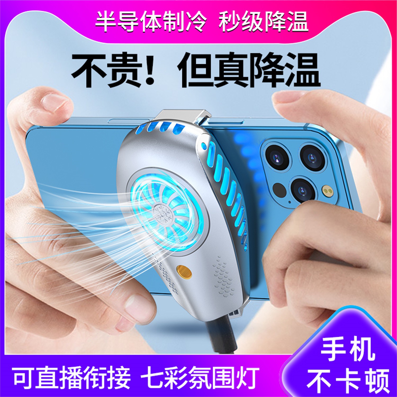 Radiator ponsel level demam, artefak Pendingin semikonduktor senyap game langsung e-sport segel es pendingin belakang