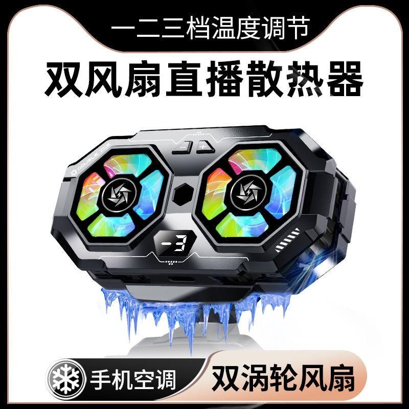 SL07 radiator ponsel, kipas ganda tiga gigi tampilan digital semikonduktor permainan ponsel pendingin langsung