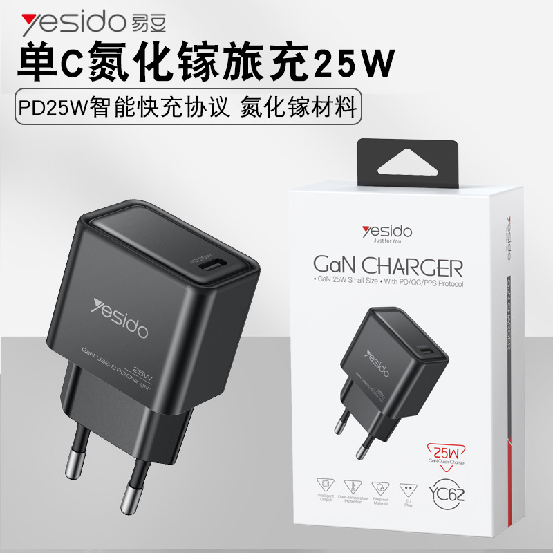 PD25W Kepala pengisi daya ponsel, gallium nitrida port tunggal standar Eropa berlaku untuk pengisi daya lintas batas Android Apple 15