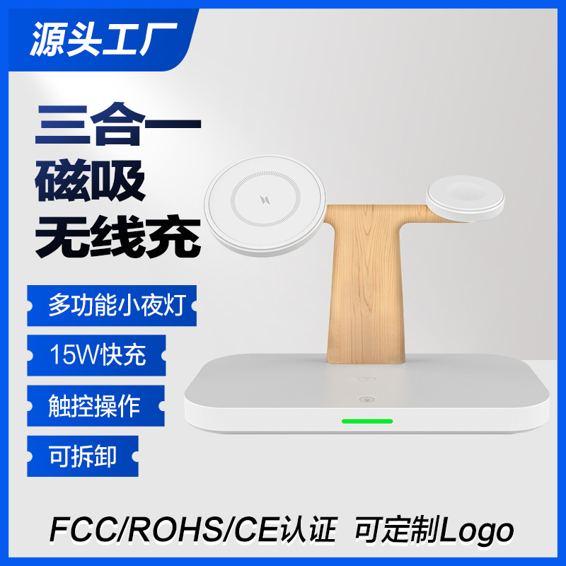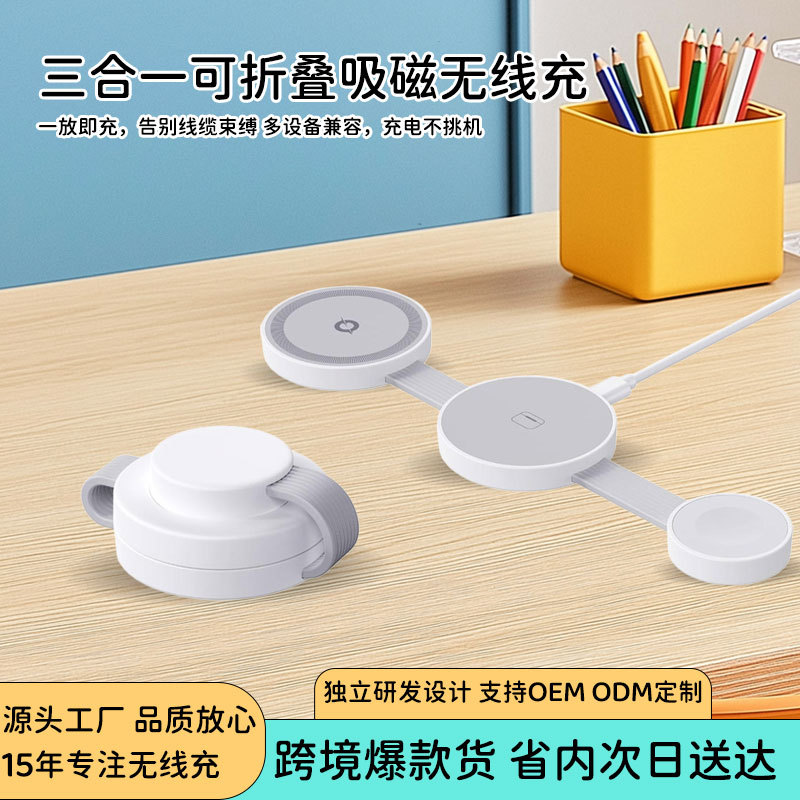Penjualan langsung dari pabrik pengisi daya nirkabel magnetis baru braket tiga-dalam-satu cocok untuk headset ponsel jam pengisian daya Cepat