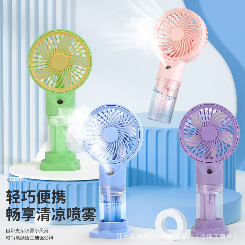新款跨境迷你可喷雾手持小电风扇雾化制冷USB充电长续航小巧风大