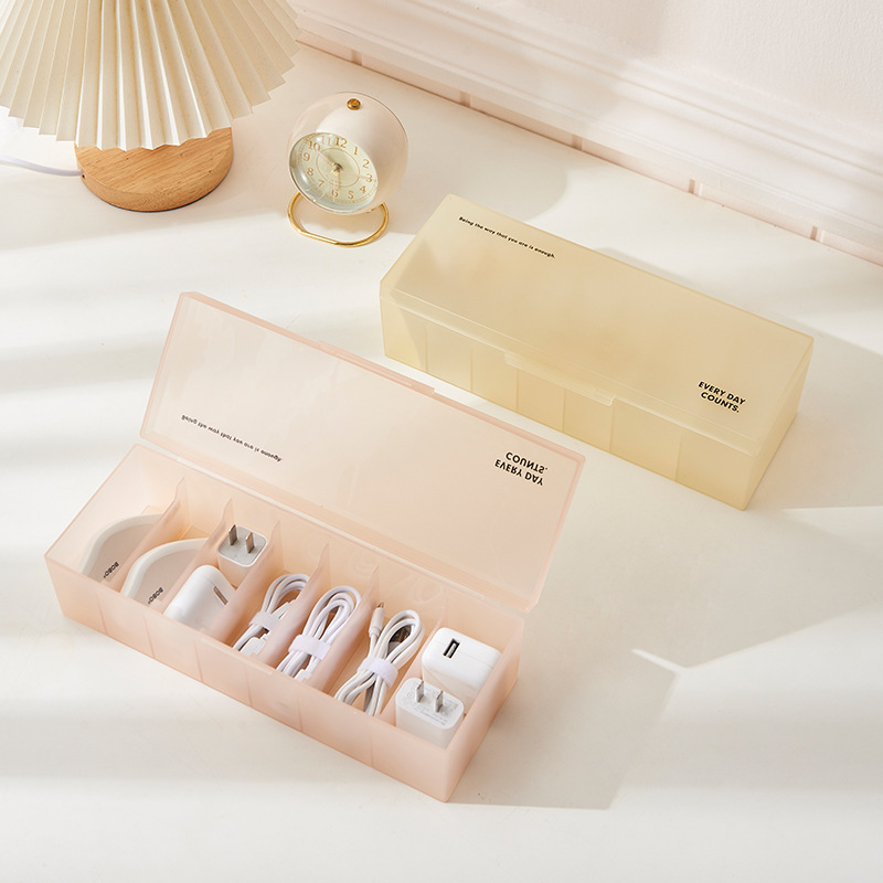 Kotak penyimpan aksesori rambut Multi-grid, kotak penyimpan perhiasan tahan debu, kotak penyimpanan kabel pengisi daya