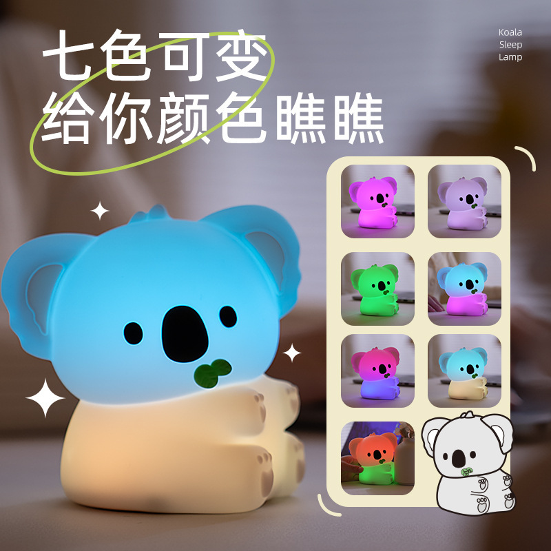 Kartun Koala Silikon Lampu Malam Kecil Isi Ulang USB Lampu Malam Berwarna-warni Menyusui di Kamar Tidur