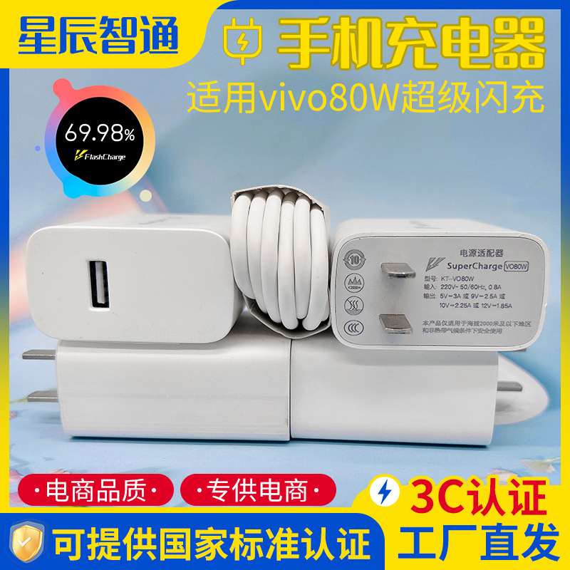 Pengisi daya ponsel vivo 44W S12 dengan lampu kilat, kepala pengisian daya IQ007Pro ponsel x70 mesin ganda 33W