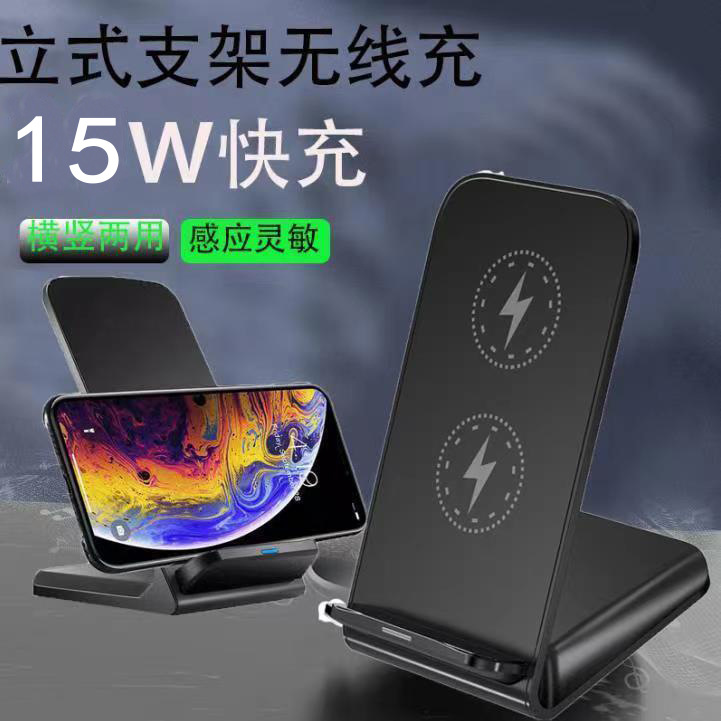 Pengisi daya nirkabel vertikal, pengisian daya Cepat 15W/20W, koil ganda, horisontal dan vertikal, fungsi ganda, braket ponsel desktop, pengisian nirkabel