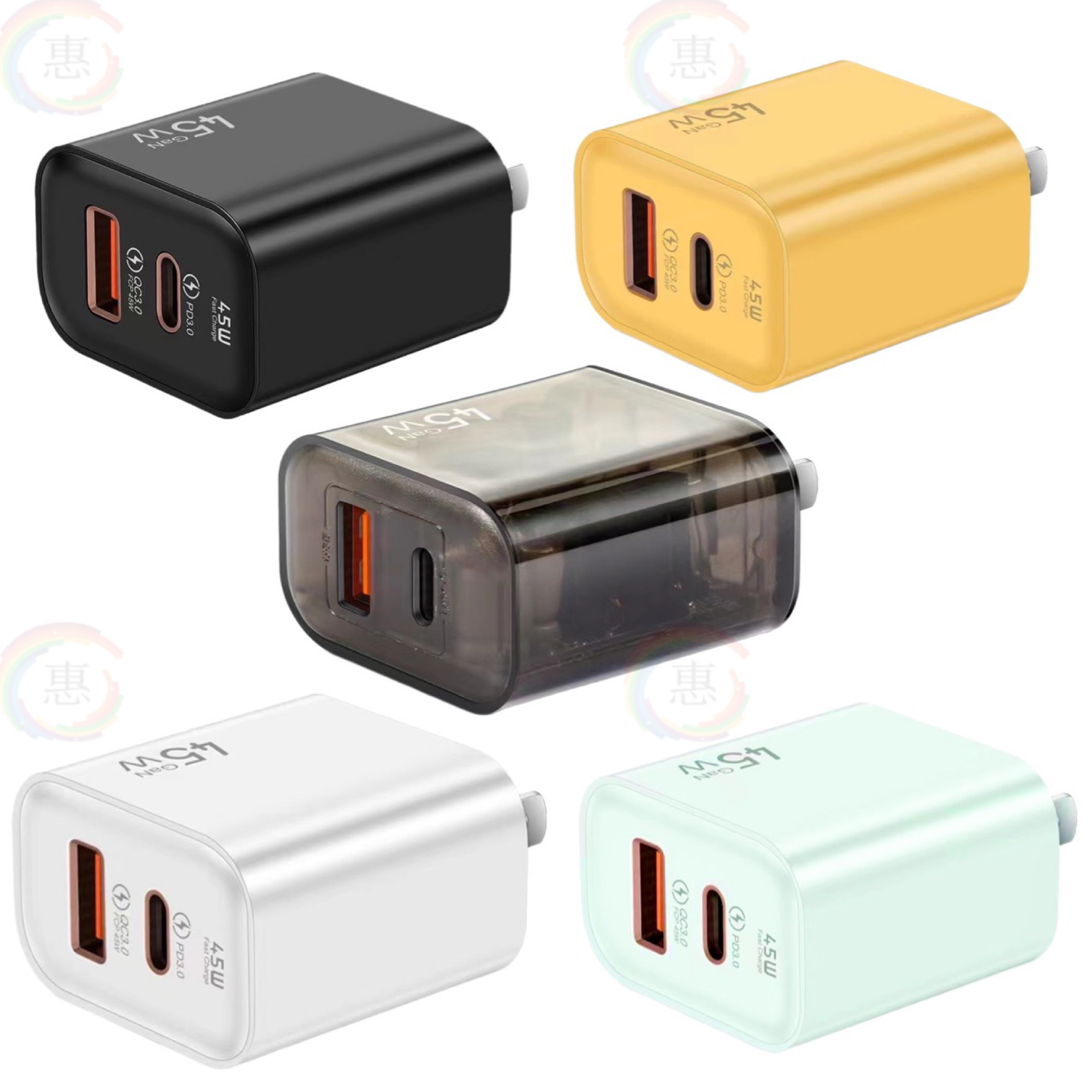 Penjualan laris gallium nitrida 25W cangkang buram sepenuhnya kompatibel dengan USB-A pengisian daya super cepat PD-C pengisi daya ponsel 45W pengisian daya kilat