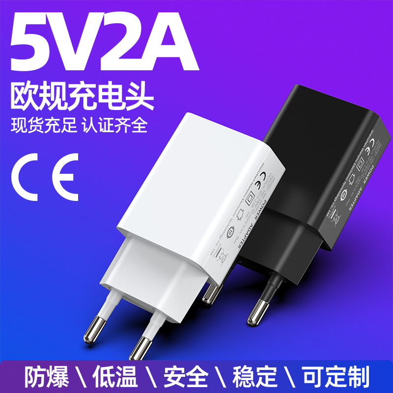 Pengisi daya 5V2A bersertifikasi CE/RoHS Kepala pengisi daya standar Eropa LVD/EMC laporan EN62368 cepat 5v2a