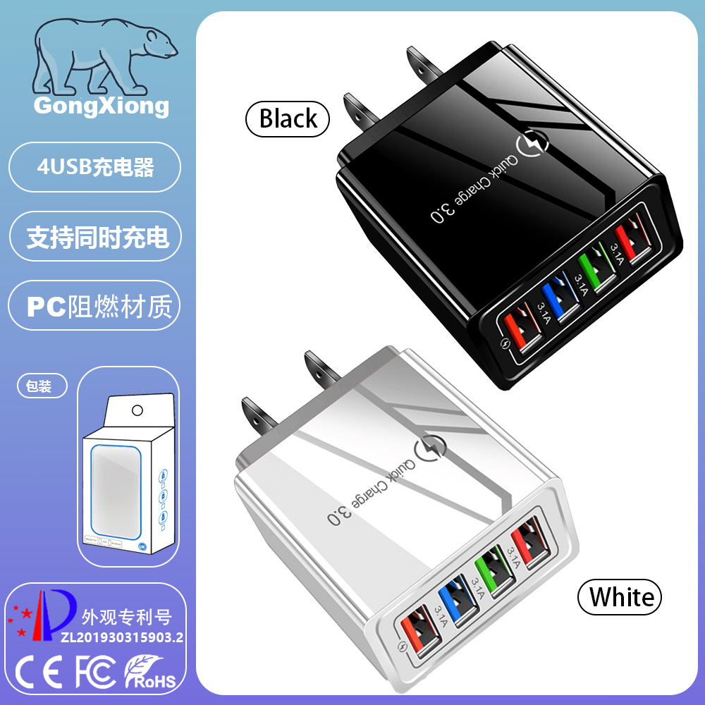 Grosir ponsel 4USB lintas batas warna pengisi daya perjalanan tablet 3A Kepala pengisi daya standar Amerika pengisi daya standar Eropa