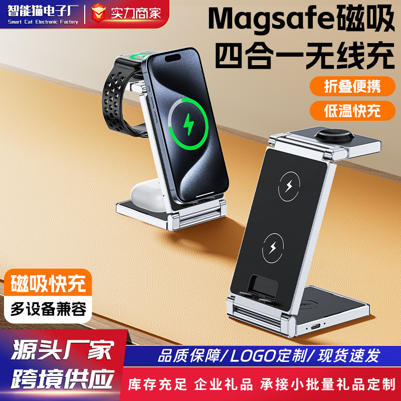 Tiga-dalam-satu desktop nirkabel pengisian daya Cepat multifungsi tempat penyimpanan ponsel lipat untuk Apple 15 pengisi daya nirkabel