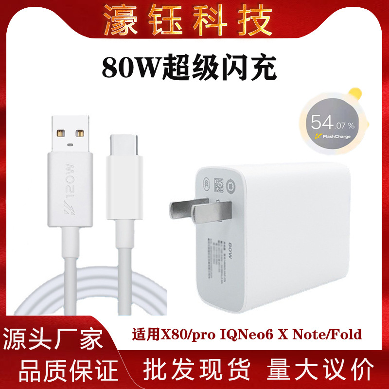 Kabel data pengisi daya ponsel vivo80w, kepala 80pro pengisian cepat iqoNeo gallium nitrida