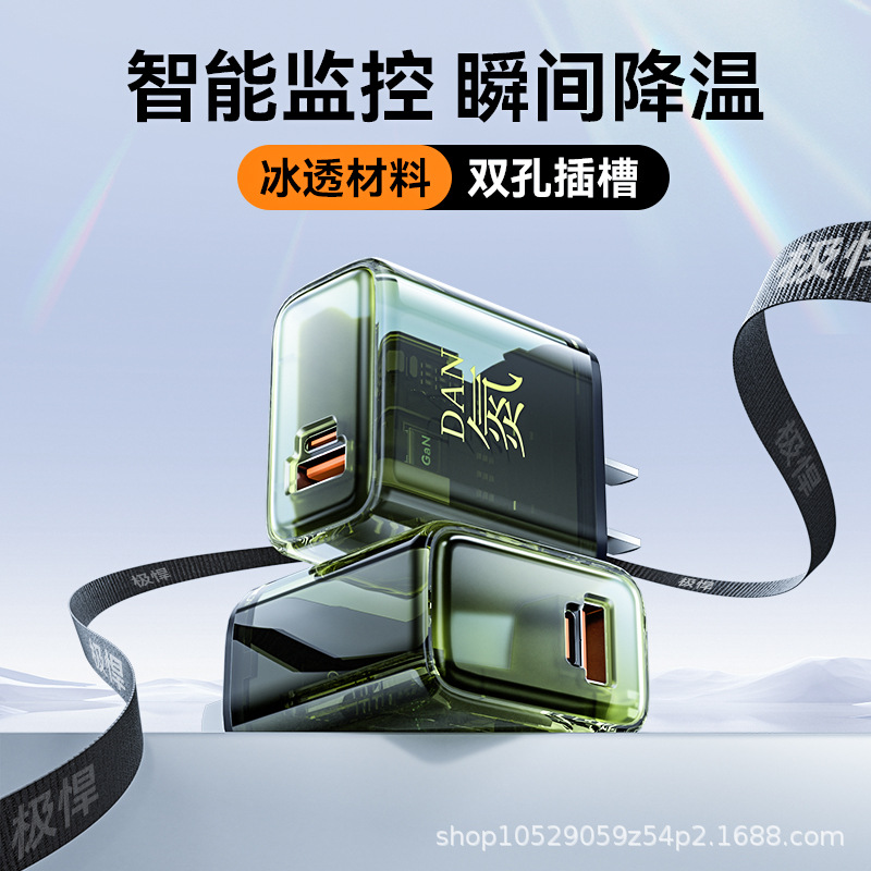Pengisi daya ponsel dual-port PD+QC PD65W, pengisi daya laptop drone super cepat, kepala pengisi daya gallium nitride