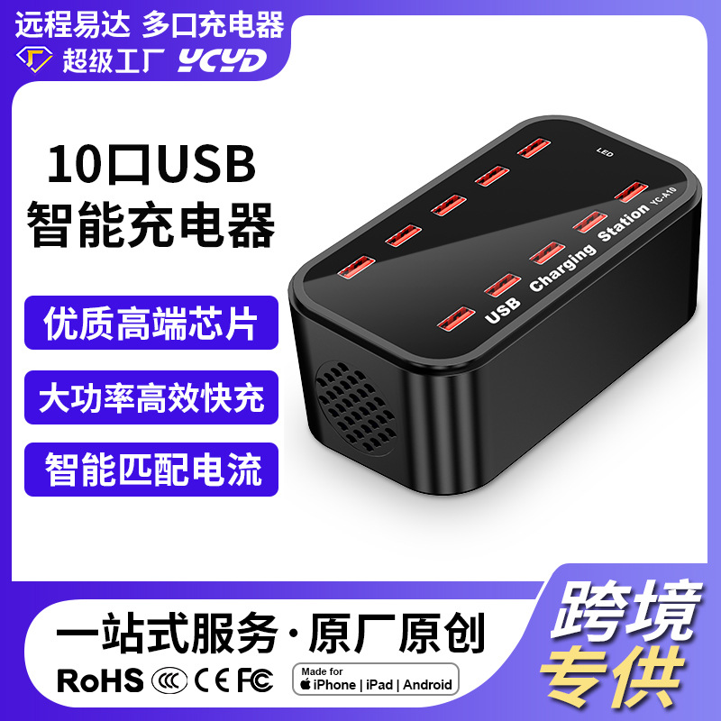 Pengisi daya USB 10 port 100W soket pintar multi-port 5v2a stasiun pengisian daya ponsel multi-port pengisian cepat power strip
