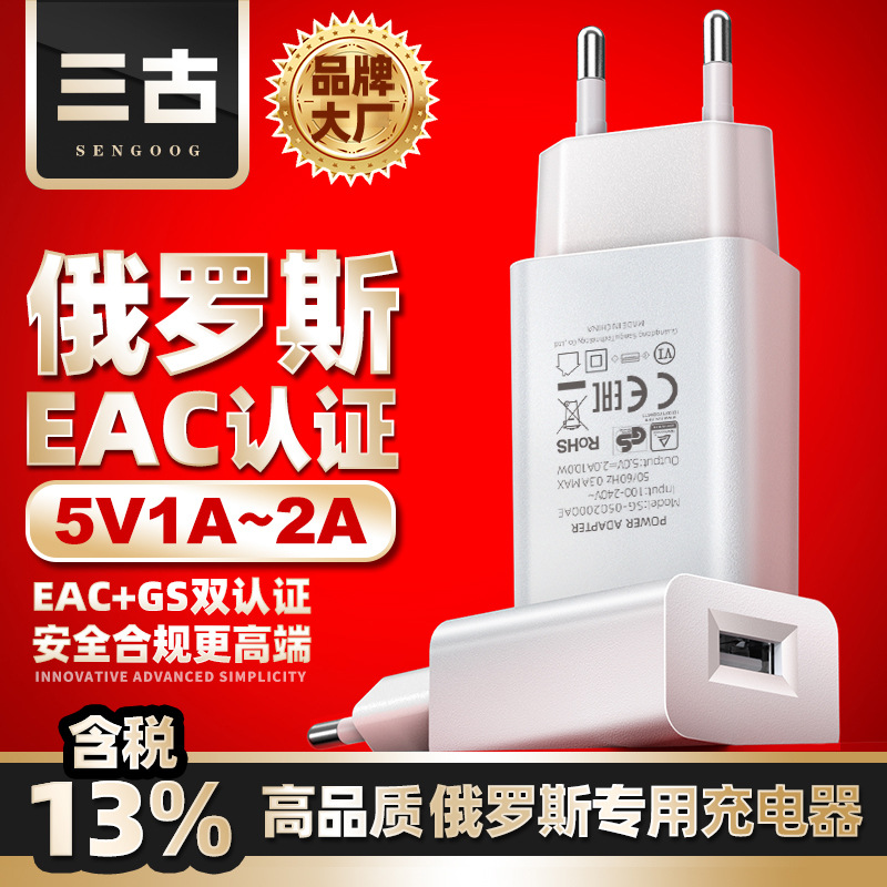 5V2A Rusia EAC Sertifikasi Pengisi Daya Ponsel Rusia 5V1A Kualitas Tinggi Pengisi Daya Adaptor USB
