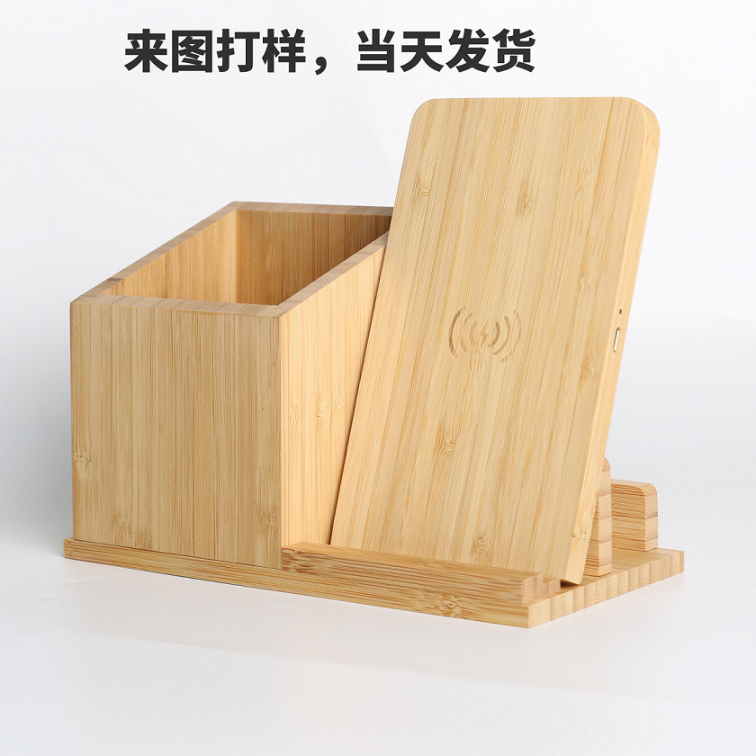 Pengisi daya nirkabel bambu, 15W tiga-dalam-satu, pemegang pena desktop, braket ponsel dapat dilepas, pengisi daya nirkabel ponsel