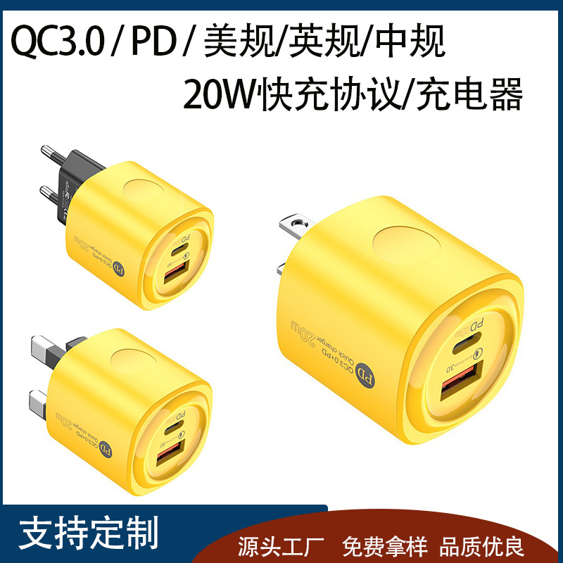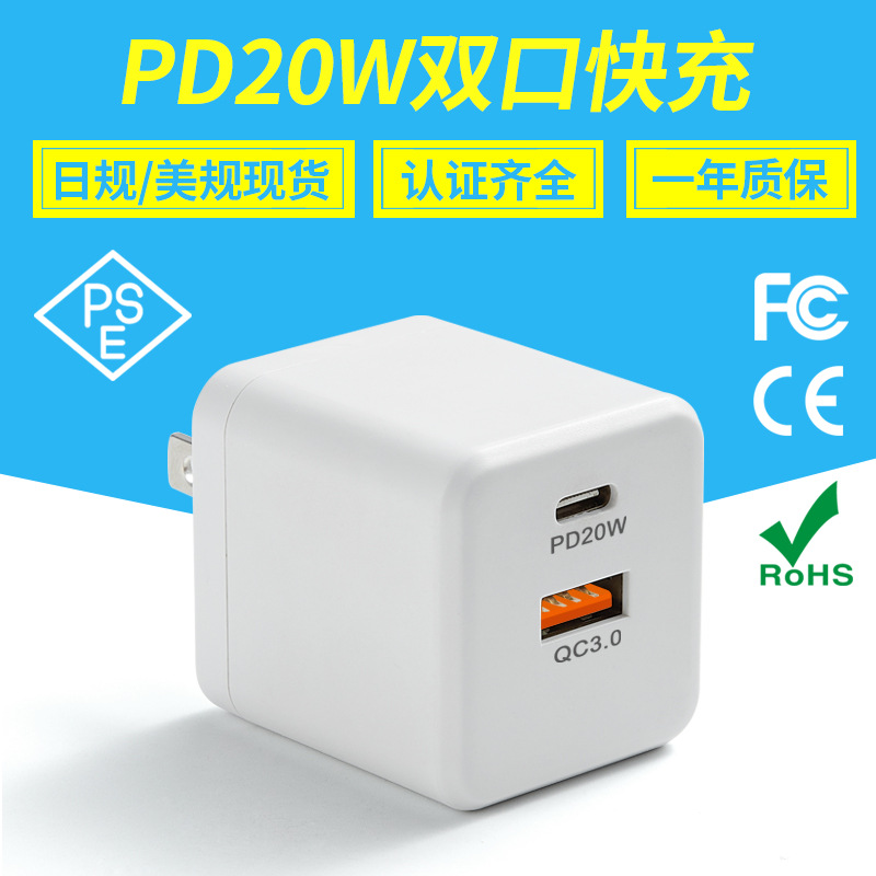 Charger Ponsel 20W Berbatasan Batas Eropa dan Amerika Model Baru QC3.0 PD20W Charger Pengisi Daya Cepat Dua Mulut A C