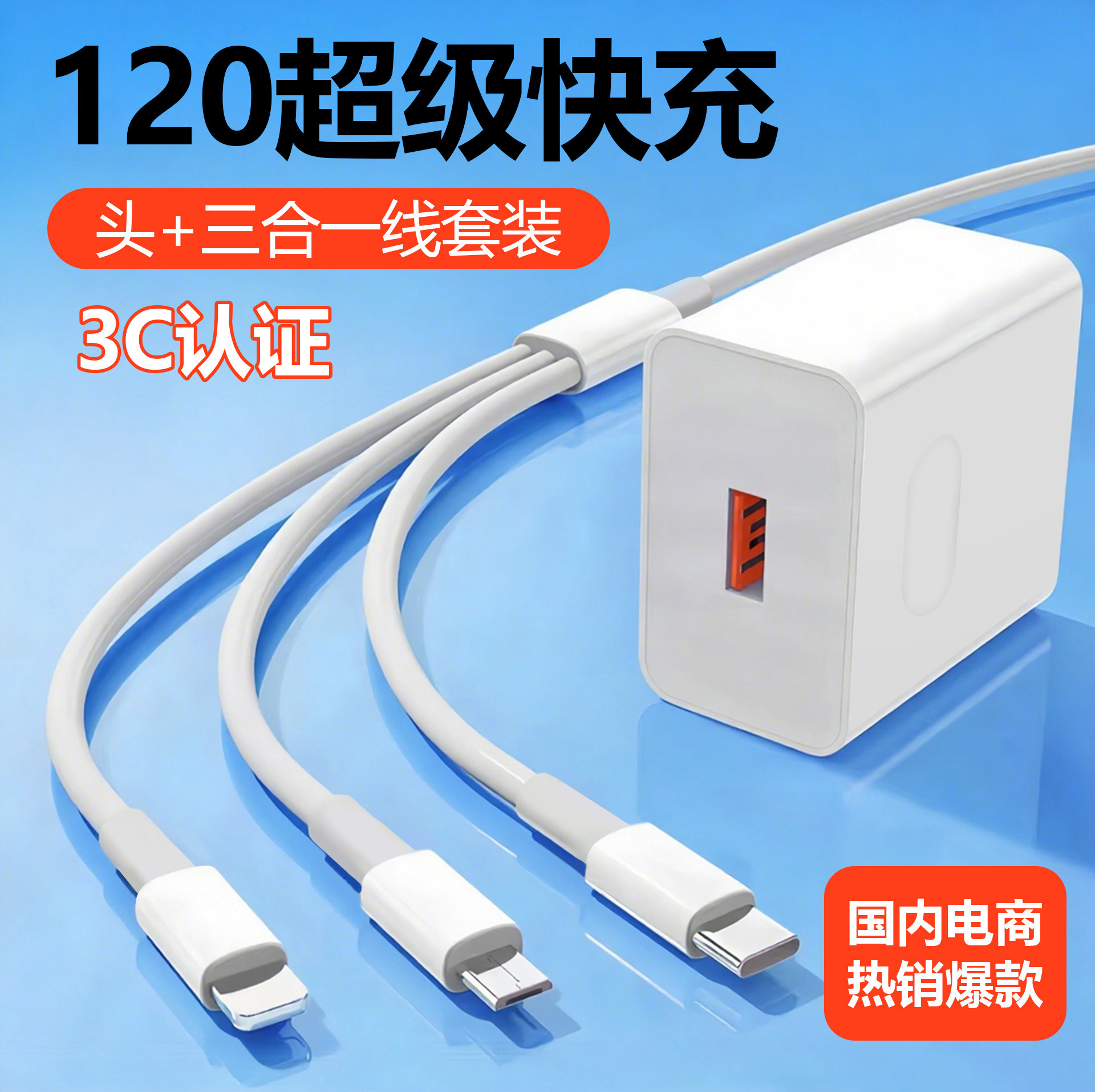 Kabel data pengisian daya super cepat tiga-dalam-satu, kepala pengisi daya satu-ke-tiga, kabel pengisian daya multi-fungsi multi-kepala tiga-kepala