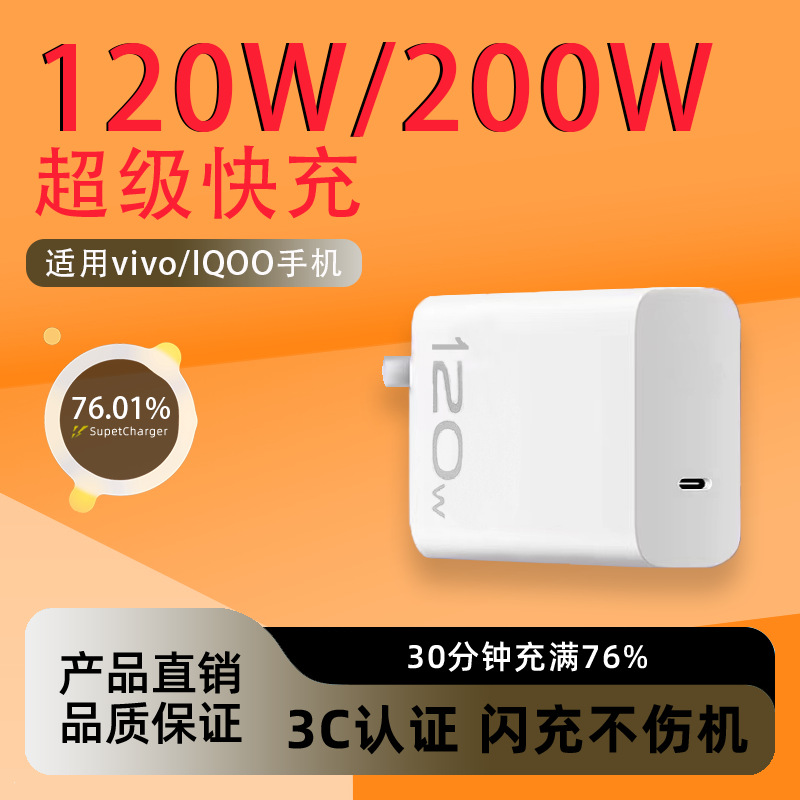 Pengisi Daya 120W Kepala Pengisi Daya Super Flash Gallium Nida untuk iQOO/vivoX100 Set Kepala Pengisi Cepat Asli