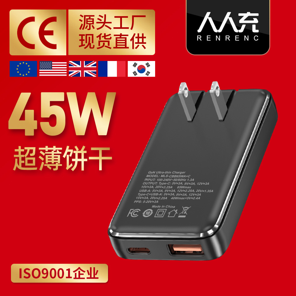 Ultra Tipis Gallium Nitrida Charger 45W Mini Cookies Charger Pd Charger Kepala Pengisi Daya Lintas Batas USB Dua Mulut Standar Eropa