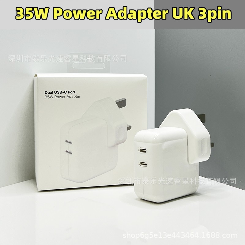 Adaptor Pengisi Daya Apple 35W Untuk iPhone16Promax15 Charger Cepat Port Ganda 3pin Spesifikasi Inggris