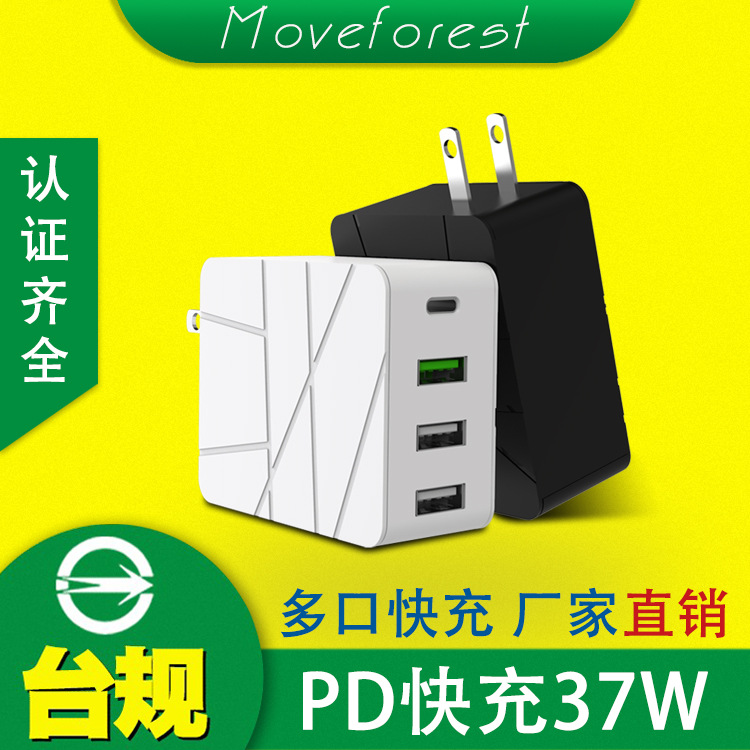 Pengukur meja 37W pengisi daya banyak port PD + QC3.0 adaptor pengisi daya perjalanan kepala pengisian cepat penjualan langsung dari pabrik