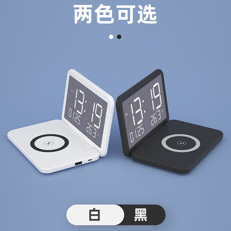 Pabrik Grosir Lintas Batas Enam Dalam Satu Tutup Flip Nirkabel Jam Alarm Ponsel Charger Cermin Dilipat Jam Pengisian Nirkabel