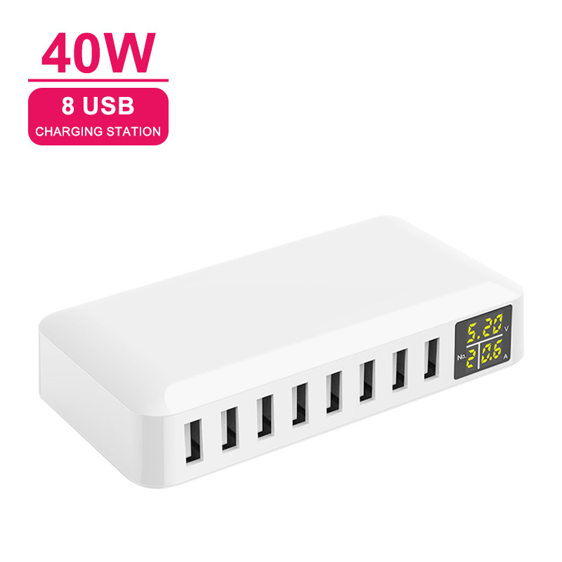 Pengisi daya usb multi-port langsung dari pabrik pengisi daya Desktop 8-port tampilan digital cerdas sertifikasi CE ROHS PSE