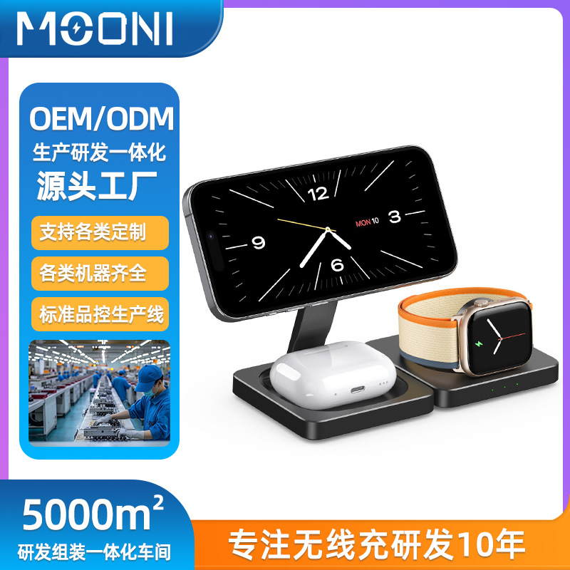 Pengisi daya nirkabel magnetik lintas batas pengisi daya magsafe lipat grosir pengisi daya nirkabel tiga dalam satu
