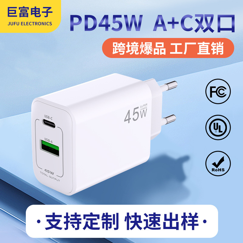 Charger 45W Charger Charger Cepat Lintas Batas Produk Baru Dua Mulut Charger Cocok untuk Charger Cepat Seri Apple 15 atau lebih