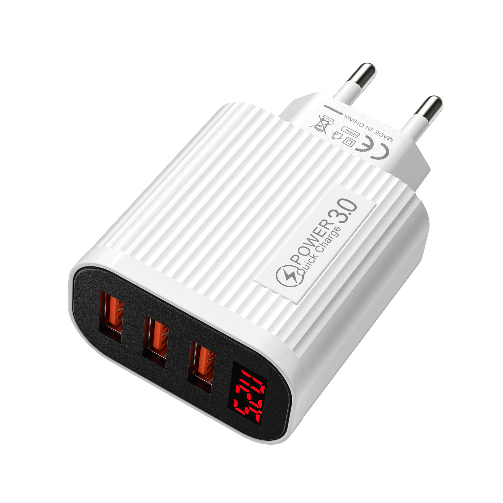 Bergaris 3USB pintar pengisi daya Cepat tampilan digital LED ponsel beku Kepala pengisi daya 5V2A adaptor daya