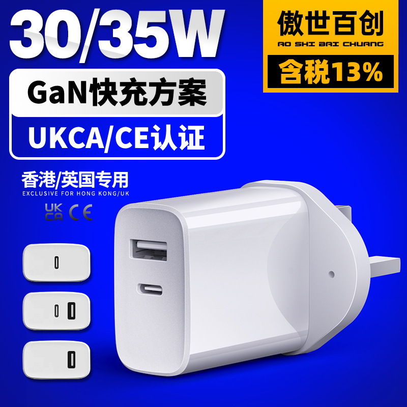 Versi Hong Kong PD35W gallium nitride charger cepat 30W standar Inggris ukca charger cepat bersertifikat CE charger Inggris