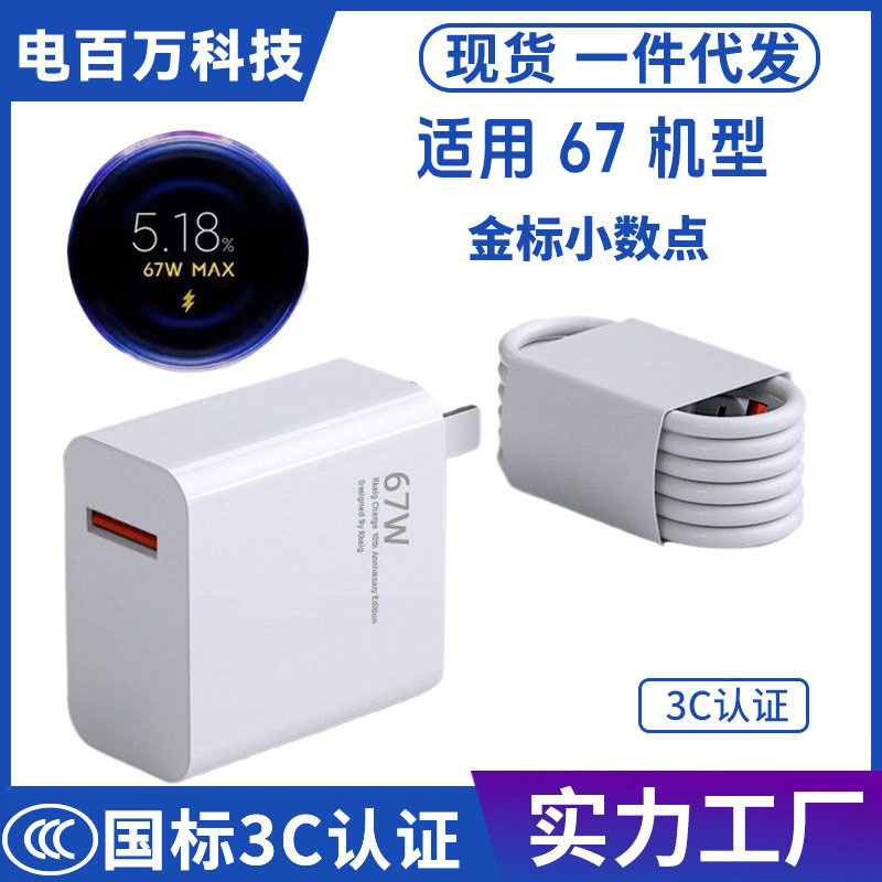 NOTE10pro pengisi daya ponsel Xiaomi 67W, colokan K40 ponsel K30 12x emas standar k50 pengisian daya Cepat 6A