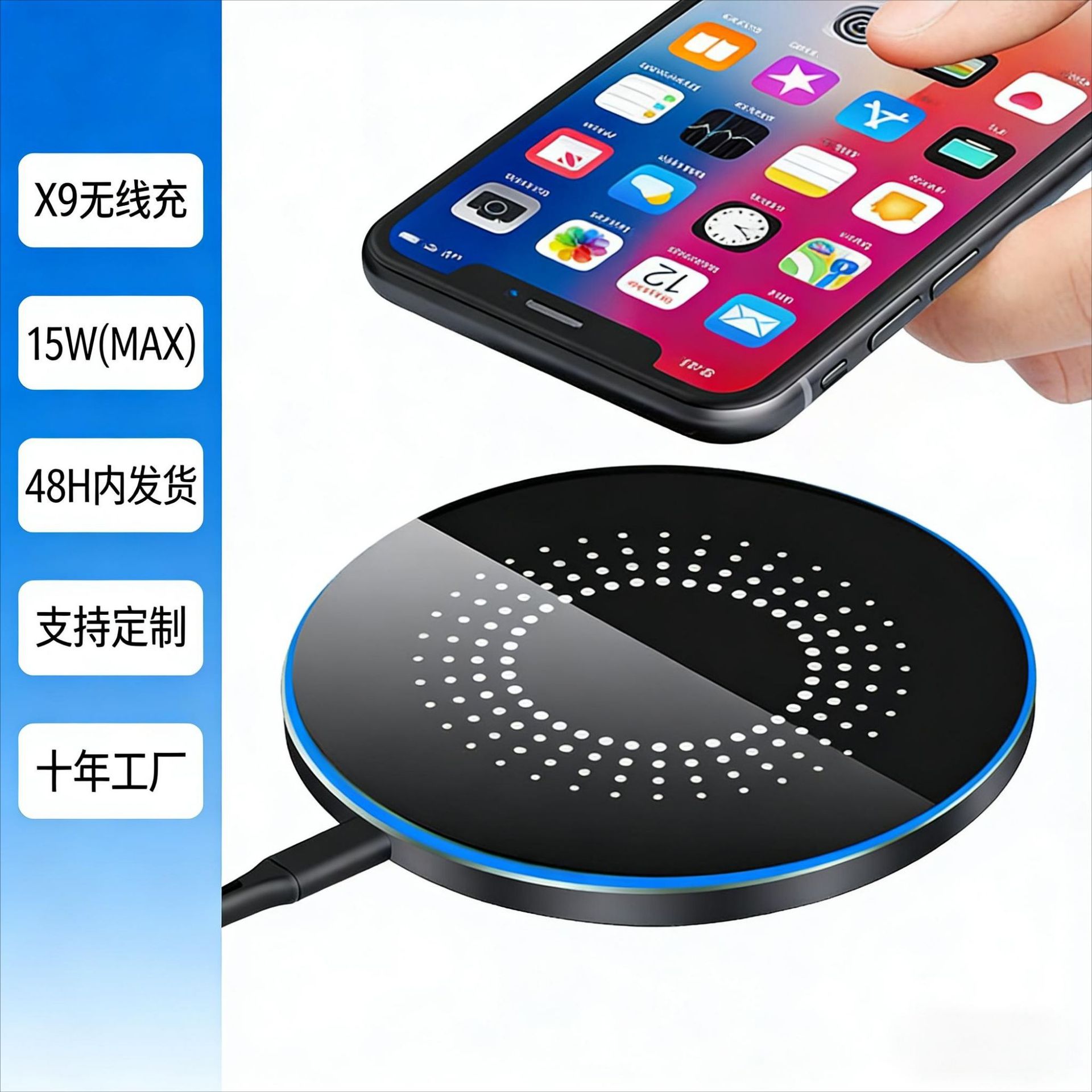 Pengisi Daya Nirkabel Universal 15W Meja Bundar Cocok untuk Ponsel Apple Pengisi Daya Nirkabel Cerdas Super Tipis Kustom