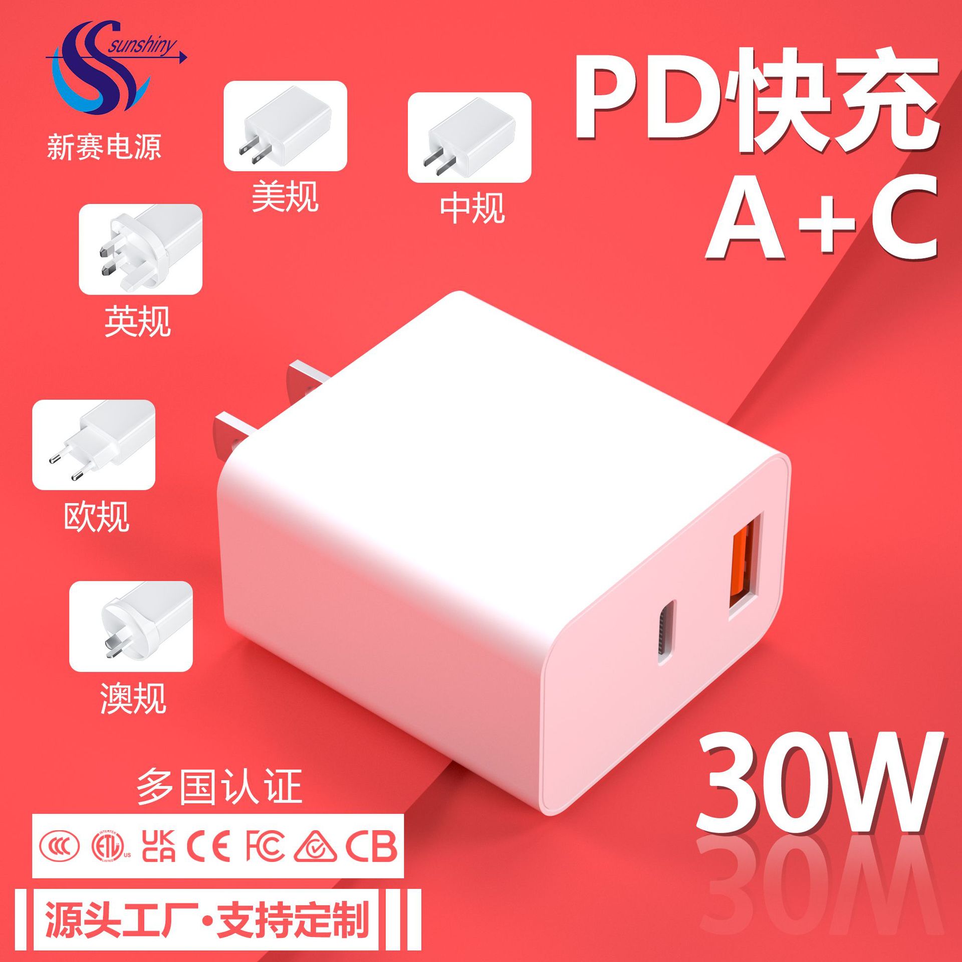 Kepala pengisian daya untuk Huawei Apple Apple Gallium Nitrida, standar Eropa, standar Amerika, PD30W, pengisi daya cepat, pengisi daya ponsel
