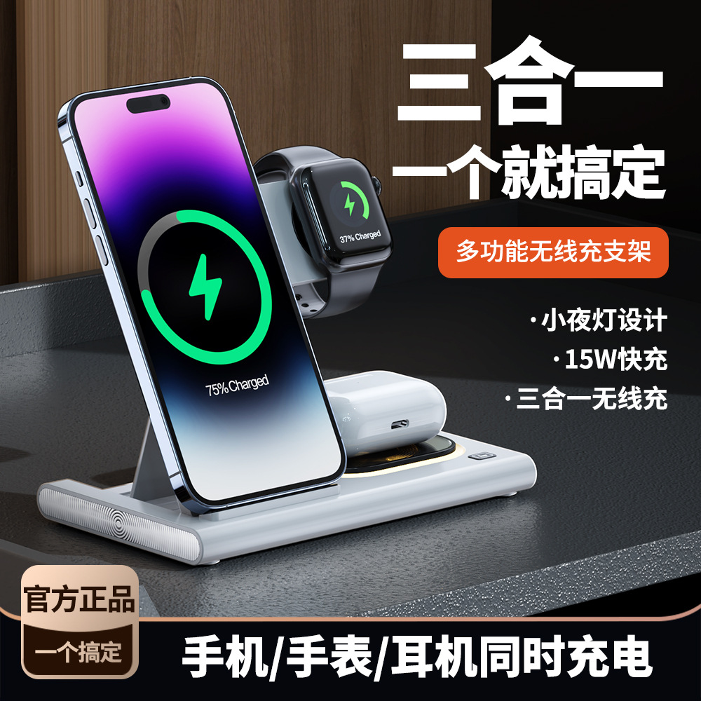 Pinsheng pengisi daya nirkabel tiga dalam satu multifungsi untuk Apple 15pro headset Bluetooth menonton basis pengisian daya