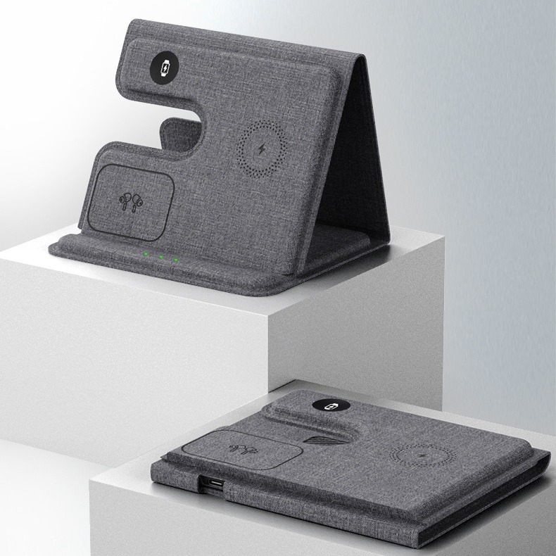 Pengisi daya nirkabel tiga-dalam-satu lintas batas luar negeri model populer desktop braket ponsel lipat nirkabel multi-fungsi 15w