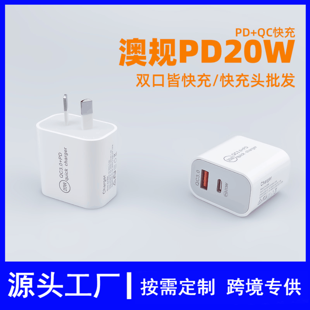 Pengisi daya ponsel pd20W standar Australia pd kepala pengisian Tipe C + pengisi daya Cepat usb cocok untuk kepala pengisian cepat Apple grosir