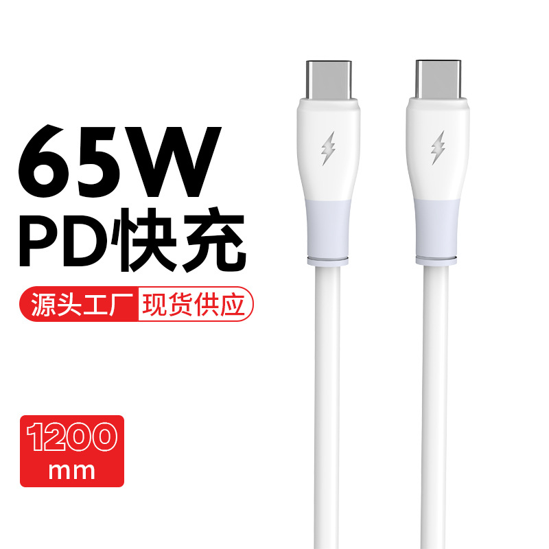 Kabel pengisi daya ponsel pengisian cepat 65W, kabel data Tipe-c jantan ke jantan, cocok untuk ponsel Huawei dan komputer, kabel pengisian cepat