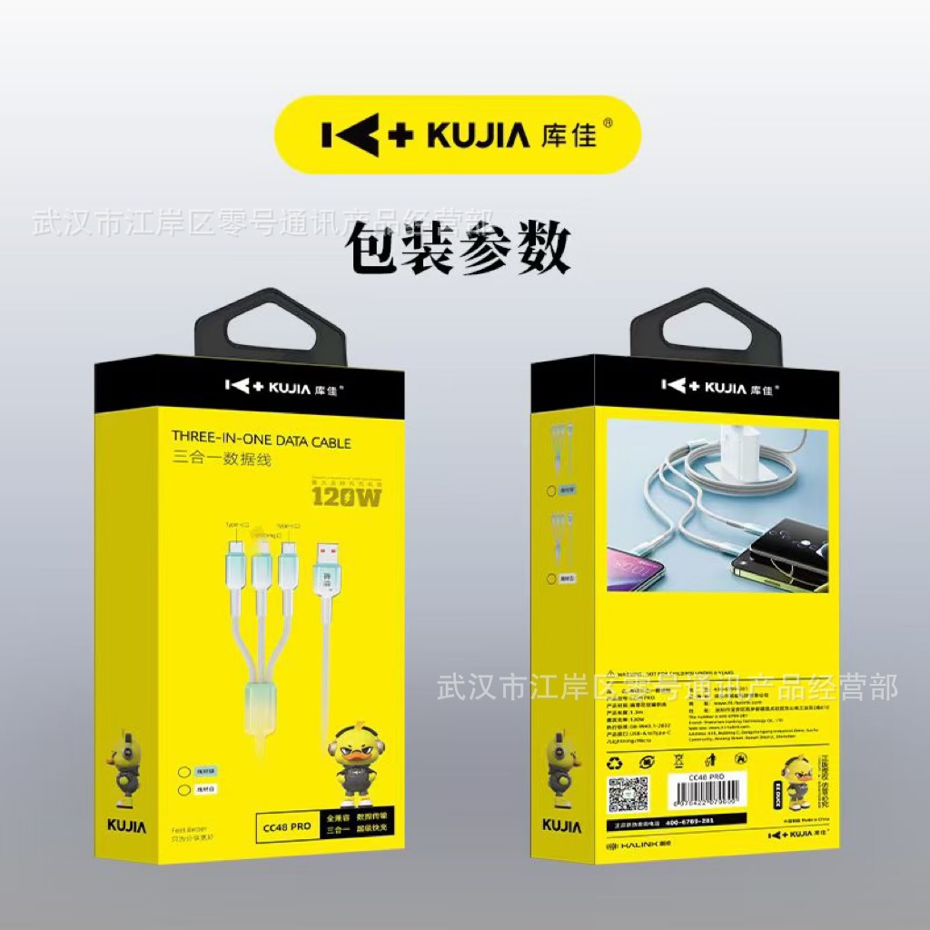 Kujia kabel data tiga dalam satu pengisian daya cepat, kompatibel penuh dengan pengisian daya cepat mobil satu hingga tiga berlaku untuk Apple tpyec Huawei