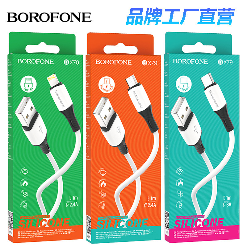 BOROFONE kabel data silikon BX79, kabel silikon pengisian daya Cepat 60W untuk Apple Android tipe-c notebook
