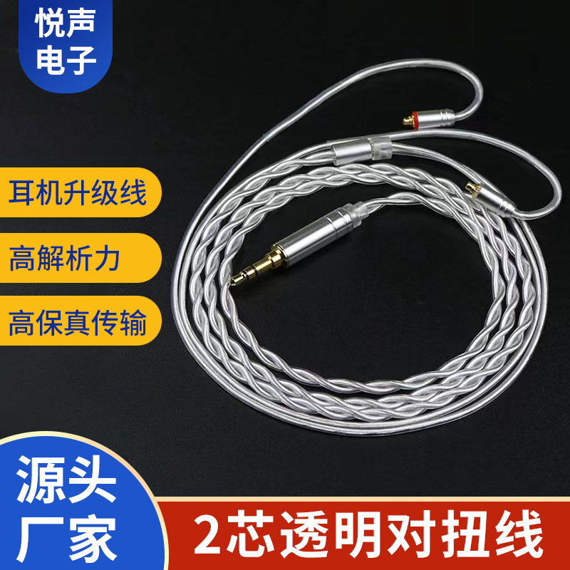 Kabel audio transparan 2-core transparan berlapis perak tembaga kristal tunggal 2-core colokan lurus memutar transparan dengan kabel upgrade headset ear-wound