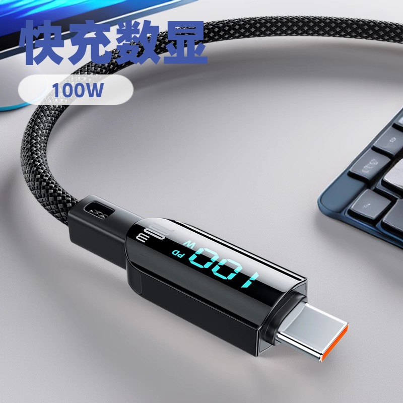 Kabel data PD100W pengisian daya cepat, kabel pengisian daya ponsel 100W tampilan digital satu garis, kabel data untuk Apple 15 Huawei Xiaomi opp